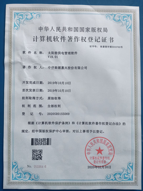 | 职业安全健康管理体系 | 太阳能供电管理软件著作权 |